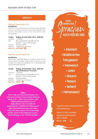 102 www.vhs-lingen.de Anmeldung: 0591 91202-0 www.vhs-lingen.de Anmeldung: 0591 91202-0 103