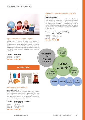 110 www.vhs-lingen.de Anmeldung: 0591 91202-0 www.vhs-lingen.de Anmeldung: 0591 91202-0 111