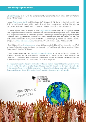 ??? Deutsch- und Integrationskursangebote der VHS Lingen gGmbH Die VHS Lingen gGmbH bietet...