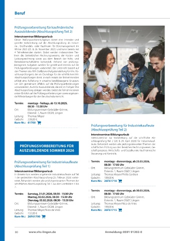 Prüfungsvorbereitung für Industriekaufleute Termin: montags - donnerstags, ab 23.03.2026, Elsterstr. 1, Raum OG08, Lingen Ausbildung
