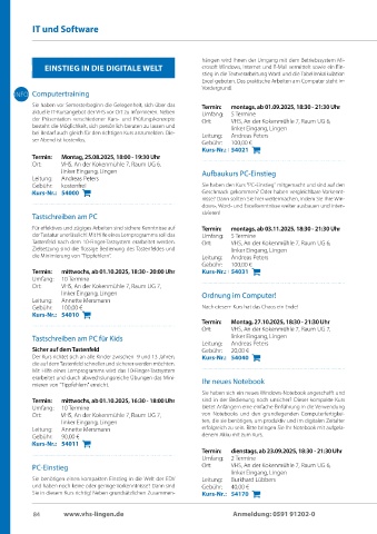 dows-, Word- und Excelkenntnisse weiter ausbauen und inten- von Apps, Fotografie mit dem Smartphone. Weitere Themen Kurs-Nr.: 54200